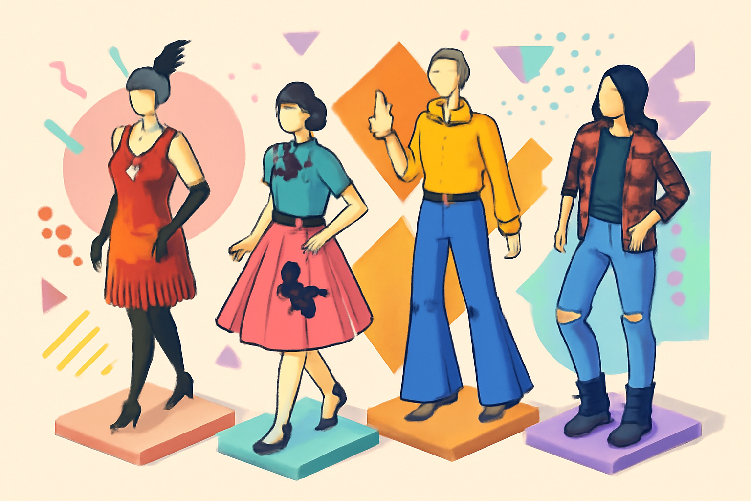 Explore how fashion has evolved from the 1950s to the 1990s, each era influencing style through textiles, cuts, and cultural shifts. From the optimistic glamour of the 1950s to the rebellious grunge of the 1990s, discover how these iconic styles serve as time capsules for their respective times.